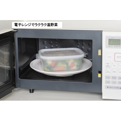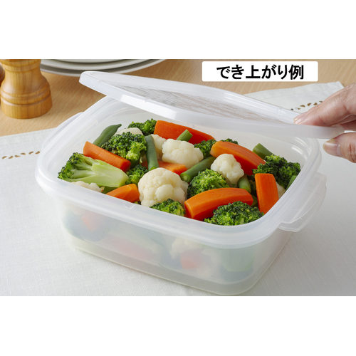 ●材質:ポリプロピレン●サイズ:幅21.7×奥行15.3×高さ7.4cm●容量:フタをした時/1.1L、満水容量/1.3L●耐冷耐熱温度:-20〜140℃●直火、オーブン及びグリルでの使用は出来ません。オーブン機能が同時に働く電子レンジには使用しないで下さい●日本製