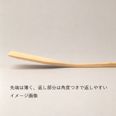 九州産の竹を使用した竹ベラ。食材の下に入りやすいよう先端は薄く、返し部分には角度をつけました。