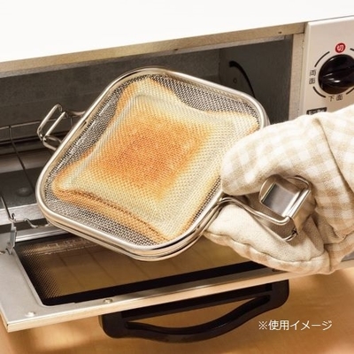 熱を妨げないメッシュ構造なので熱が直接パンに届き外はサクっと中はふっくら仕上がります。オーブントースターや魚焼きグリルで使用。本体がメッシュなので非常に軽いです。