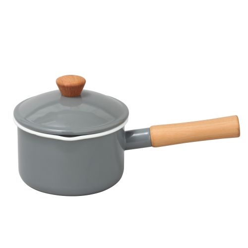 インテリアに馴染むカラーと自然な風合いを生かした天然木の取っ手の組み合わせの片手鍋。お味噌汁、煮もの、少量の煮込み料理等、万能に使えます。利き手を選ばない両口付き。蓋付き。