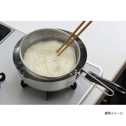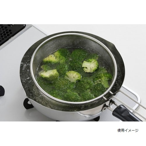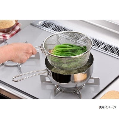 ●18−8ステンレス(網線径0.4mm×14メッシュ)●全長36×幅20×高さ13cm、内径18.5×深さ8.7cm●175g●日本製 ※内径20cm以上の鍋に使用可能。