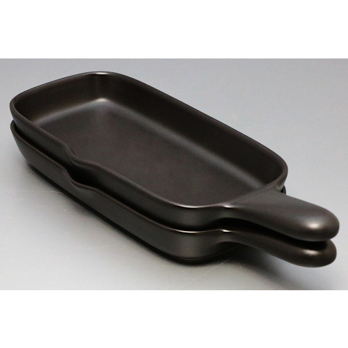 直火・オーブン・電子レンジ・魚焼きグリルと様々な熱源に使うことができる便利なグリルプレート。ハンドル付きでグリルやオーブンから取り出しやすく、テーブルへ運ぶ時も安全です。お料理の温め直しにも最適。