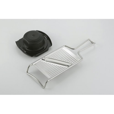 ●スライサー:18−0ステンレス、フレーム:18−8ステンレス、ホルダー:ポリプロピレン(耐熱110℃)・18−8ステンレス●全長26.7×幅9.7×高さ3cm、刃渡り8cm、ホルダー幅12×奥行10.3×高さ5cm●スライサー173g、ホルダー55g●日本製