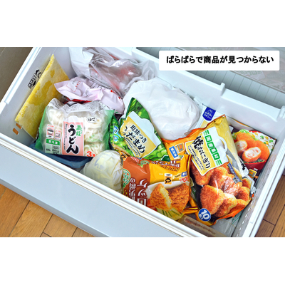 冷凍食品・冷凍保存袋の縦置き収納、仕分けに便利です。