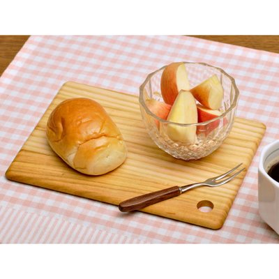 食卓でパンや果物をカットする時にも便利。穴が空いているので、使わないときはフックなどにかけて収納。
