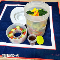 本体、ドレッシング容器共にパッキンが付いていて液漏れを防ぎます。トッピングとドレッシングは別々に持ち運べて、食べる前に和えられます。