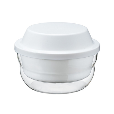 ●ガラス本体:耐熱ガラス(耐熱温度差:120℃)、フタ・ザル:ポリプロピレン(耐熱温度:140℃)●径16.5×高11.5cm●400g●満水容量:1.2L●日本製※オーブン・直火使用不可。