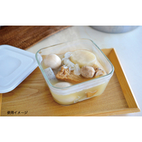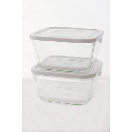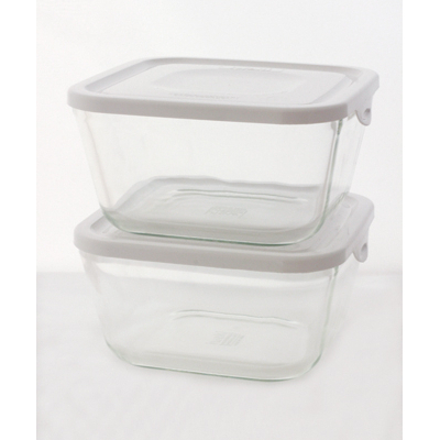 ●耐熱ガラス(耐熱温度差:120℃)、フタ:ポリプロピレン(耐熱温度:140℃)●15×15×高7.8cm、2個積み重ね時:16cm、フタセット時:15.3×15.7×高8cm●1100ml●630g(1セット)●中国製※フタはかぶせる程度で密閉式ではありません。