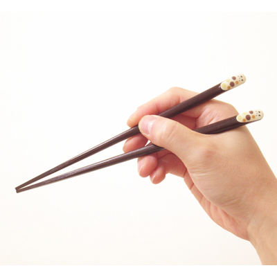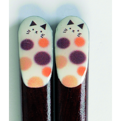 三毛猫をイメージしたイラストがかわいいお箸。箸先は摘まみ易い四角形。