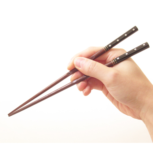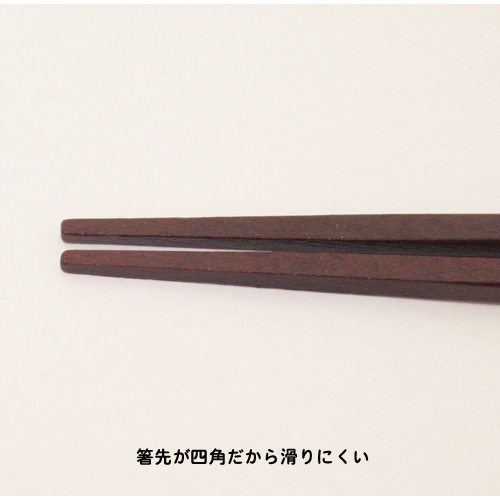 指が掛かる部分にくぼみが付いて持ちやすい。箸先は摘まみ易い四角形。
