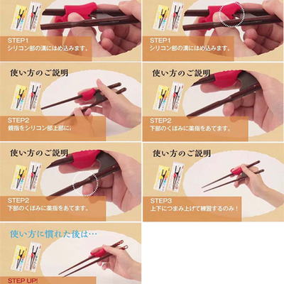 シリコン部と指の形に添ったくぼみで、食事の作法に適う正しい箸の持ち方を自然と身につけることができます。