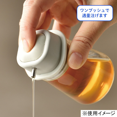 ●本体:耐熱ガラス(耐熱温度差:120℃)、フタ:ポリプロピレン、注ぎ口:18−8ステンレス、パッキン・プッシュボタン:シリコーンゴム●径5×高10cm●実容量:80ml●本体、フタ、注ぎ口・プッシュボタン:日本製、パッキン:ベトナム製※中濃ソースなど、粘度の高い液体には使用できません。