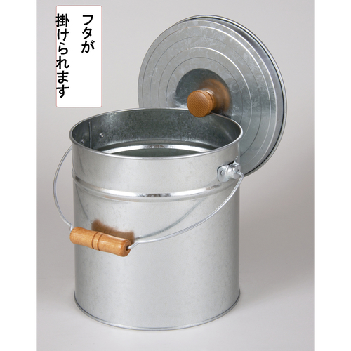 ●本体:トタン(亜鉛メッキ鋼板ポリエステル樹脂加工)、つまみ・取っ手握り:木製、ツル:鉄線、金具:鉄板●サイズ:26.5×25.5×高さ26cm●重量:900g●容量:8L●日本製