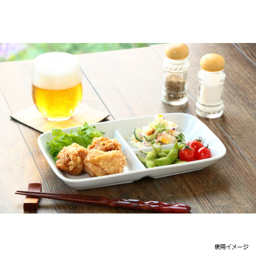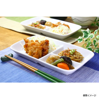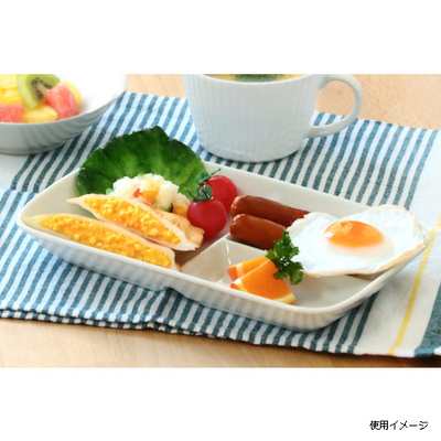 仕切で3つに分かれた部分にメインや副菜を盛りつけることで、栄養バランスが考えやすくなります。一枚で済むので、洗い物も楽々。