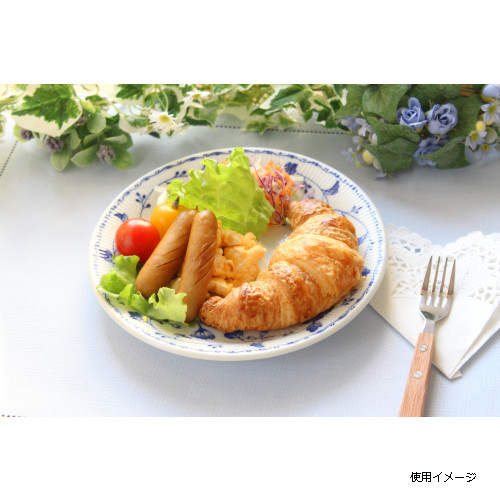 白磁にブルーの花柄が映える上品な器。ケーキ皿やモーニングプレートにも使いやすいサイズです。