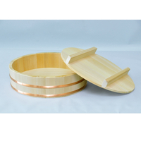良質なさわら材を用い、職人の手で丁寧に作られた飯切です。さわらは軽くて柔らかく扱いやすい。ご飯の余分な水分を吸って、家庭でもおいしい酢飯が作れます。ほのかに香る木の香りもおいしさを引き立てます。