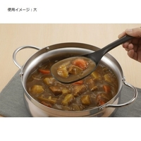 まぜる・よせる・すくう・盛り付けるなどができます。一体成形でお手入れカンタン。柔らかいからカチャカチャと音がすることなくボ−ルやお鍋をキズつけません。大はフライパンや大きめの鍋やボールに、小は小ぶりな鍋やお皿の取り分けに使いやすい。お菓子作りにも便利です。色移りが気にならないブラックタイプ。