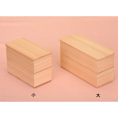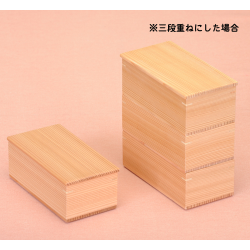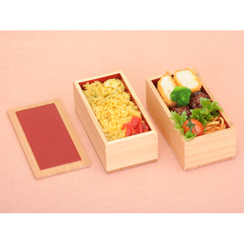 通勤カバンなどに入れやすい細身の二段弁当。二段とも同じ構造だから3段以上重ねてミニお重としても使える。