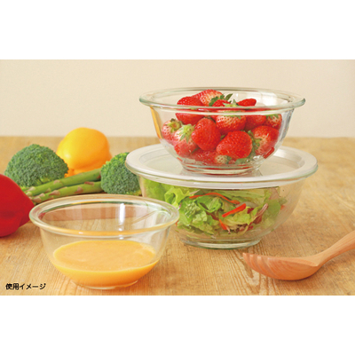 ●耐熱ガラス(耐熱温度差:120℃)、フタ:ポリプロピレン(耐熱温度:140℃)●大:径21.3×高9cm、中:径18×高8cm、小:径14.4×高6.8cm、フタ:径21.8×高1.3cm●大:1500ml、中:900ml、小:500ml●大:750g、中:520g、小:270g、フタ:80g●中国製、フタ:日本製※蓋はかぶせるもだけのもので密封性はありません。