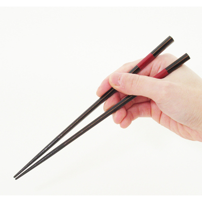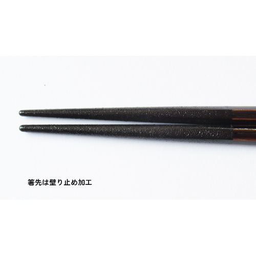 シンプルなデザインながら華のある美しさが目を惹く。箸先に乾漆を巻きつけた滑り止め加工付。
