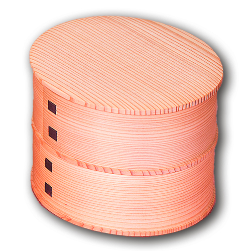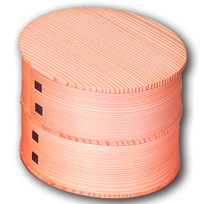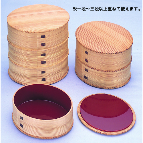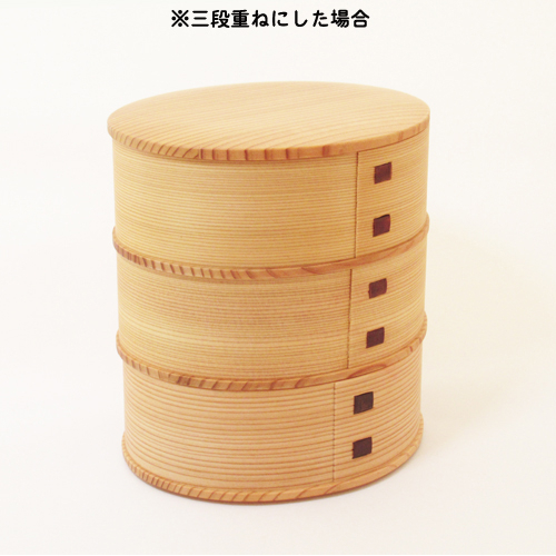 小判弁当と同じく内側が漆塗。上下とも同じ構造だから何段でも重ねられて使い方が広がる。二段で720mlでたっぷり容量。