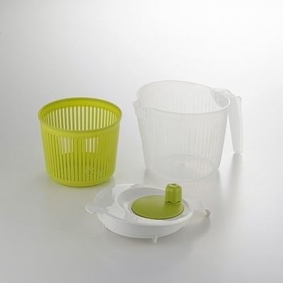 ●本体・フタ・バスケット・ツマミ:ポリプロピレン(耐熱100℃)、ギア:ポリアセタール(耐熱120℃)●幅22×奥行16×高さ16cm、バスケット:内径13.5×深さ11cm●330g●日本製