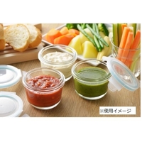 ●本体:耐熱ガラス、フタ:ポリプロピレン、パッキン:シリコーンゴム●縦8.2×横8.2×高さ6.4cm●185g(1個)●150ml(1個)●本体:耐熱温度差120℃、フタ:耐熱温度/100℃、耐冷温度/-20℃、フタパッキン:耐熱温度/200℃●中国製※フタ・パッキンは食洗器使用不可