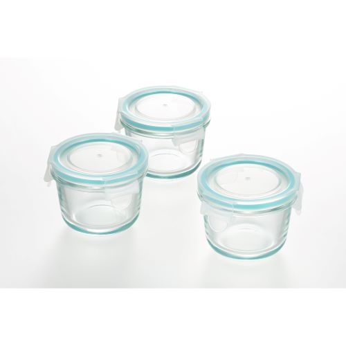 グラスコンテナ3点ロック式ガラス保存容器 ミニ丸型 3個組