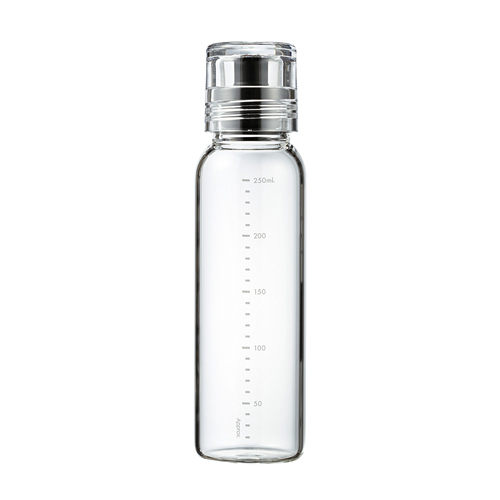●本体:耐熱ガラス(耐熱温度差:120℃)、フタ:PCT樹脂、シリコーンゴム口径3.7×全幅5.5×高20.3cm●250ml●237g●ガラス:中国製、フタ・注ぎ口:日本製