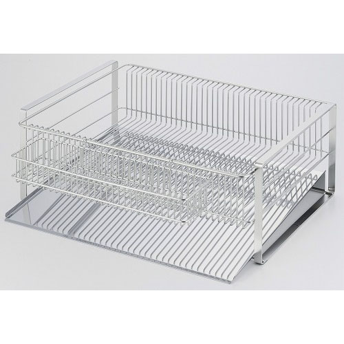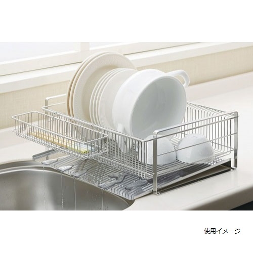 ●18−8ステンレス、トレー:18−0ステンレス、脚ゴム4個:ポロン樹脂●流水口39cm、本体:幅33×奥行42.3×高さ15cm、カゴ内寸:幅28×奥行39×深さ10cm、トレー:幅33×奥行39.2×高さ2.8cm、箸置き内寸:幅29×奥行7×深さ4.5cm●2.15kg●日本製