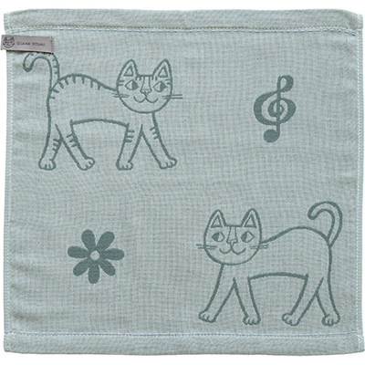 ねこのイラストを二重ガーゼのジャガード織りで表現したふきんです。Ag+(銀イオン)を糸に練りこんでいるので、雑菌の増殖を抑え、いやなにおいがしにくいです。乾きが早く、やわらかで手になじみます。