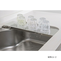 洗い物を置くスペースとしても使えます。38〜58cmに伸縮でき、シンクに合わせられます。脚ゴムつきでシンクのフチに傷がつきません。