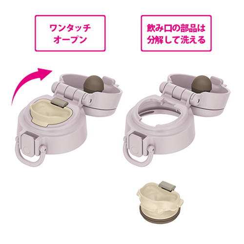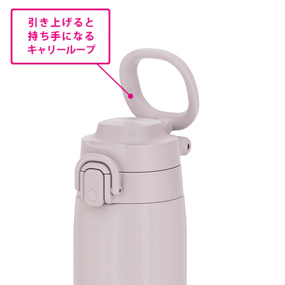 ワンタッチオープンで持ち運びやすいキャリーループ付きマグ。