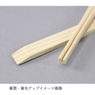 白い木肌が特徴のトド松の間伐材を使用。箸の上部を鋭角にカットした天削の形状でおもてなしにも。封をした箸袋に入っています。