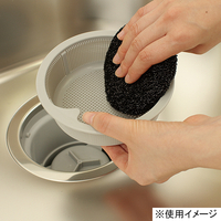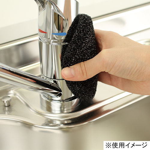 ループ状のPET糸が汚れをかき取ります。三角コーナーのぬめり取りにも。シンクのコーナーにもちょうどよくフィットします。