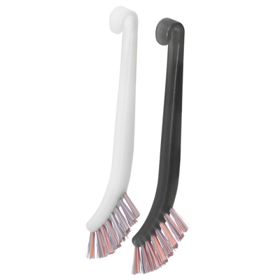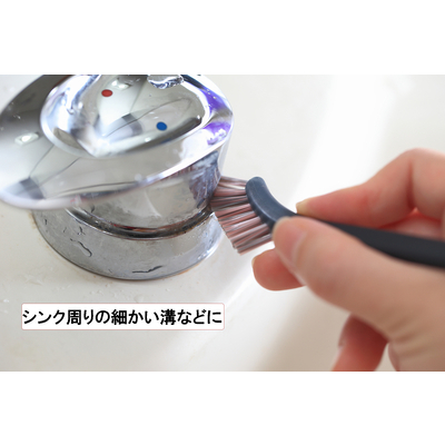 蛇口の根元やタンブラーの口、お弁当箱のパッキン等細かい汚れに使いやすい。持ちやすく・力が入れやすく・汚れを落としやすいブラシ形状。白と黒で使い分け出きます。