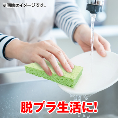 植物繊維のセルロースが原料なのでマイクロプラスチックが溶出しません。土に埋めると自然分解され、焼却の際にも有害ガスが発生しない、環境にやさしいスポンジです。