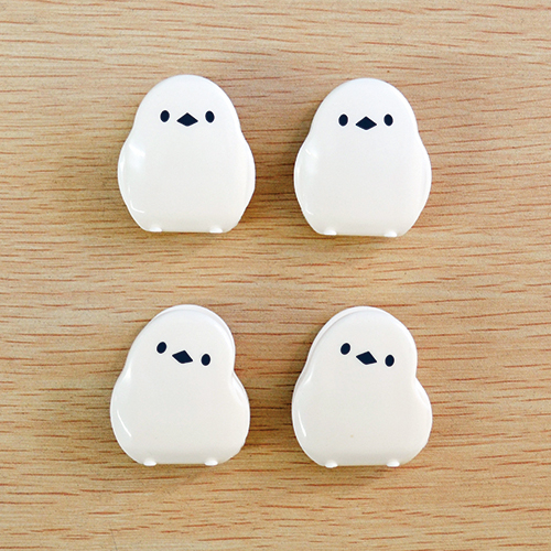人気のシマエナガのように、ふっくらしたフォルムと、あどけない表情が可愛らしいデザインです。ちょこんととまっていることり2個と、小首をかしげたことり2個の、計4個入。