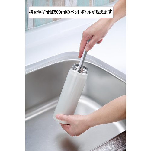 ●柄:ポリプロピレン、熱可塑性エラストマー、ブラシ部:ナイロン、ポリウレタンフォーム、ポリエステル●サイズ:伸長時:3.5×3×28.2cm、伸縮時:3.5×4.2×17.2cm●対応サイズ:口径3cm以上●重量:39g●中国製