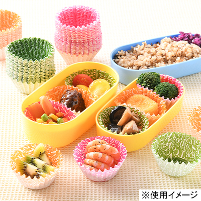 ●PET/紙●底径4×高3cm●耐熱温度170℃●レッド、グリーン、オレンジ各40枚●日本製※オーブンやオーブントースターでのご使用はおやめください。170℃以下のご使用でも、20分以上加熱しないでください。