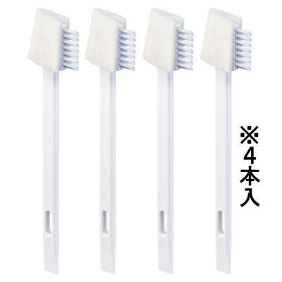 ポリエステル不織布に汚れをこすり落とすゴムラテックスを加工しています。すみに届くナイロンミニブラシ、こすり落としに便利なヘラ付き。