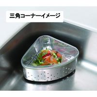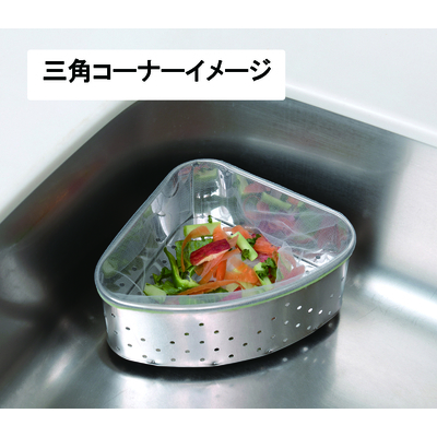 本体:再生ポリエステル、口ゴム:ポリウレタン●サイズ:20×15cm●適応サイズ:三角コーナー・排水口上部の三辺合計が62cm迄●耐熱温度:120℃●中国製