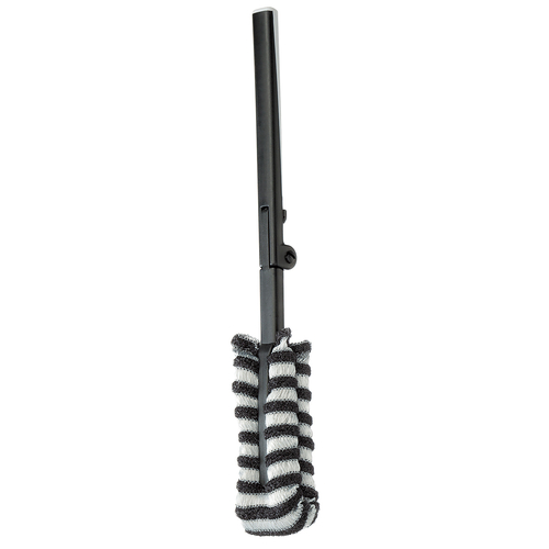 ●柄:ポリプロピレン、熱可塑性エラストマー、ブラシ部:ナイロン、ポリウレタンフォーム、ポリエステル●サイズ:伸長時:3.5×3×28.2cm、伸縮時:3.5×4.2×17.2cm●対応サイズ:口径3cm以上●重量:39g●中国製