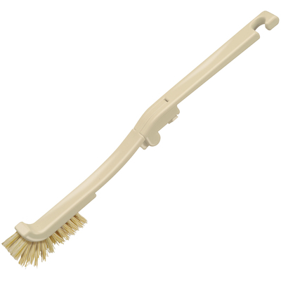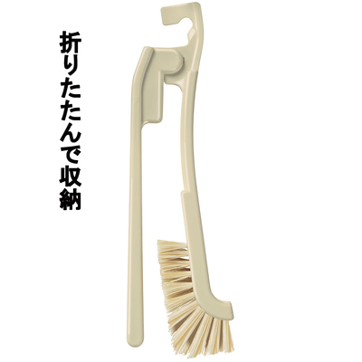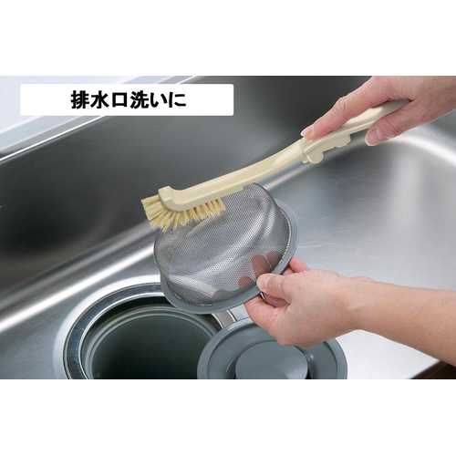 水に強くコシが有る天然毛パキンで、キッチンの排水口汚れを落とします。たためるハンドルで折りたたんで収納ができます。