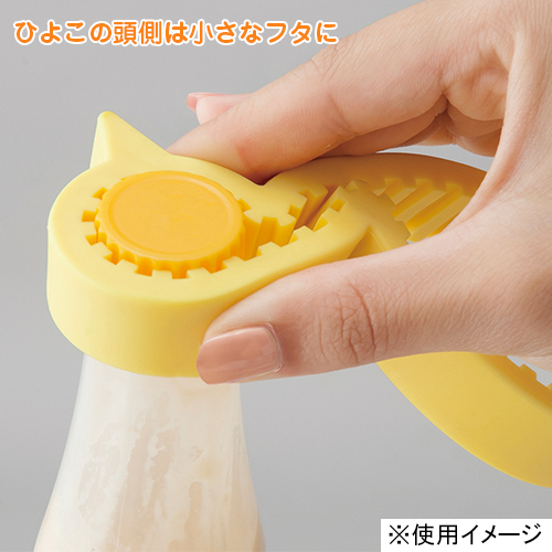 ひよこの頭で瓶、お腹でジャム等のフタを開けられます。径2〜7cmのフタに対応。