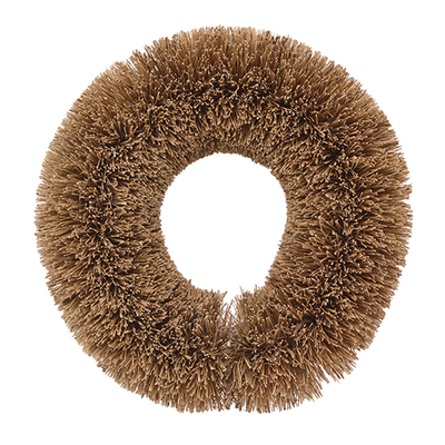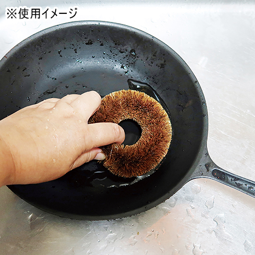 天然素材のパームヤシ繊維コイアファイバーで作ったたわしです。丸い輪っか状で握りやすく、カーブが鍋底にフィット。コシのある天然繊維が、鉄鍋や土鍋にこびりついたコゲ・油汚れをしっかりかき落とします。