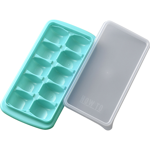 一度に10個の氷が作れ、氷の端を押すだけで1個ずつ簡単に取り出せます。必要な分だけ取り出して使えるので、離乳食やだし汁の冷凍にも便利です。JIS基準水漏れ試験適合の密閉フタ付きで、持ち運ぶ際や冷凍庫の開閉時に水がこぼれず、ニオイ移りも防ぎます。