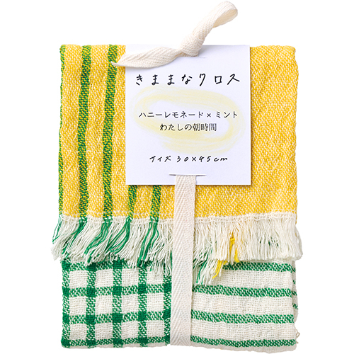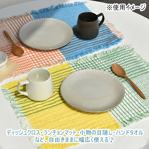 ディッシュクロス、ランチョンマット、小物の目隠し、ハンドタオルなど、その日の気分で自由気ままに使ってほしい切りっぱなしのデザインクロスです。