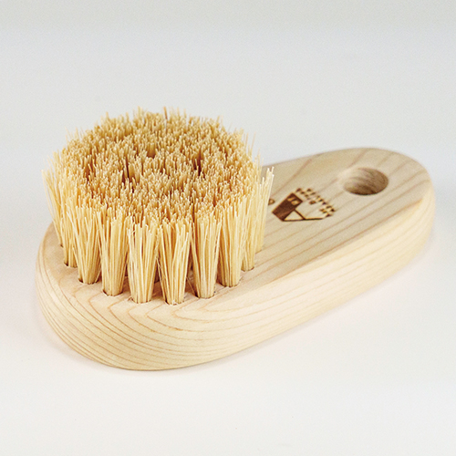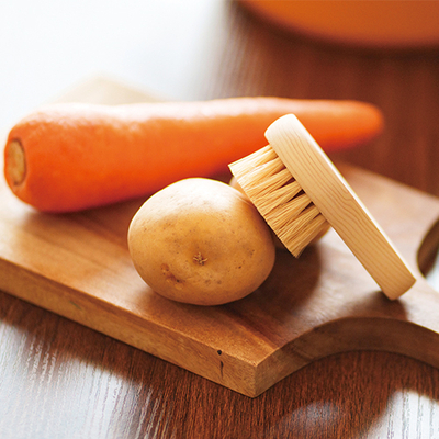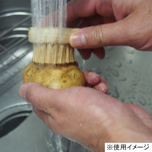 毛は硬めの植物素材で土付きの大根・ニンジン・サツマイモなど快適に洗うことができます。強く洗えば皮もむけます。手になじんで洗いやすく、しっかり汚れを落とすことができます。細かなところも洗えます。