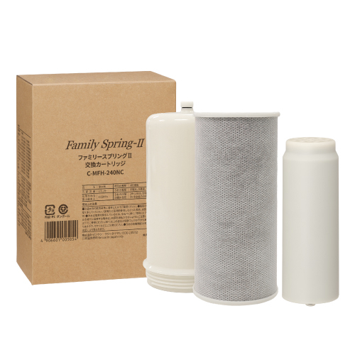 ファミリースプリングⅢ(MFH−241・MFH-242)用の交換カートリッジです。浄水器のカートリッジは定期的な交換が必要です。交換の目安は約2年となります。
